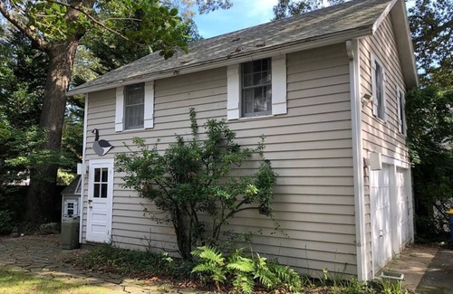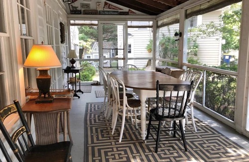 Old Rehoboth Charm - step back into the '20's with this 7 bedroom 4.5 bath home designed to bring the whole family. Large yard with adorable children's playhouse and hammock, etc. Massive wrap around screened porch. Living room has two portable AC units, 1st floor bedroom has a 2 twin beds and ensuite bath with tub and 1 AC unit, 2nd floor has a bedroom with 1 King bed and 1 AC unit, 1 Queen bed and 1 AC unit, 2 Twins and 1 AC unit, 2 Twins and 1 AC unit and hall bath with old clawfoot tub plus another hall 3/4 bath. 1/2 bath off laundry room on the 1st floor and enclosed outside shower. Detached garage apartment has 2 bedrooms on the 2nd floor, 1 with 2 twins and a set of bunks and the other with 1 double bed and a shared bath with a tub and central air conditioning.