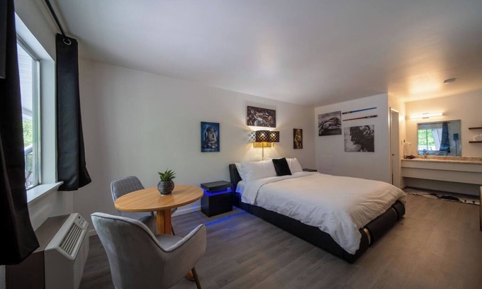 Featuring a king size bed, this room provides a cozy and inviting atmosphere during your visit. Has small sitting area, A/C, microwave, small fridge, and coffee maker.