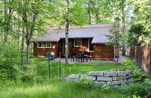 Steps Away Cabin #2 is a one bedroom, one bath cabin just steps away from Glacier National Park in the village of West Glacier. The gorgeous walk from the cabin to Glacier will leave you wishing that your vacation could last forever! Steps Away Cabin #2 offers a full kitchen, dining room, living room, gas stove, television, and a great private backyard with forest views. The Master bedroom features a King size bed, flat screen TV, and a writing area. This Cabin has everything you need for a wonderful stay in Glacier Park! In addition, you have the option to rent the cabin with the fantastic cabin next door for a larger family or friend gathering. Book your stay today in this wonderful Glacier Park Cabin!