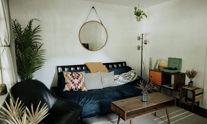 Step into a stylish blend of mid-century charm and modern comfort at this inviting Bloomington retreat. Perfect for up to 3 guests, this 2-bedroom home features a cozy living area, a sleek, fully equipped kitchen, and a tranquil backyard with a fire pit and outdoor dining. With plush bedding, Smart TVs, and thoughtful amenities, this home offers a peaceful haven just minutes from top attractions, dining, and Indiana University.