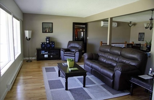 This Blind Bay vacation property offers 3 bedrooms, 2 bathrooms and a front deck with amazing views of Shuswap Lake. The inside of the house is 1800 sqft between 2 levels and features leather furniture, a massive 50' TV and gaming system, TV, Wi-Fi internet, streaming services, stereo with Bluetooth and outdoor speakers to enjoy your music while sitting on the deck looking out over the lake.