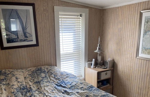 Two bedroom beach bungalow with large deck and spectacular water views. One queen bed, 2 twin beds. Air conditioning units in both bedrooms, cool whole house. Beautiful bathroom with glass enclosed shower. Large deck with gas BBQ. Steps from the beach and 2 miles to Baiting Hollow Winery or Cider House Brewery. Less than 5 miles to Tanger Outlets, Splish Splash and Golf Courses. Playground and Basketball Court in community.