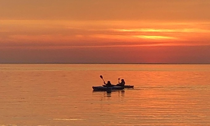 This property comfortably sleeps 4 people. The living room is furnished with a sofa and lounge chairs. The kitchen is fully equipped. Situated on the beach, guests can enjoy an afternoon of beach activities and later watch the sunset on the beach. There are 3 kayaks for use on the Bay