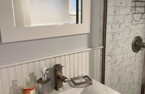 Just bring your toothbrush! This apartment is steps to the beach in a quiet neighborhood. Includes parking for one car. Walk to stores and restaurants, 45 minute train ride to NYC. Internet access to work remotely in between dips in the beautiful Atlantic Ocean. Treat yourself to an easily accessible vacation spot!
