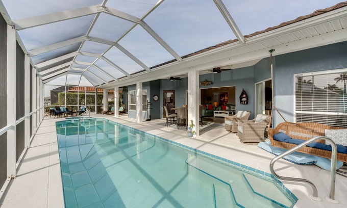Steps to Canal: Punta Gorda Home w/Private Pool is located in Burnt Store Isles. Steps to Canal: Punta Gorda Home w/Private Pool provides accommodation, featuring Balcony/Terrace, Sports/Activities, Bedding/Linens, among other amenities. This House features Balcony/Terrace, Sports/Activities, Bedding/Linens, to make your stay a comfortable one.