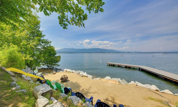 Steps to Lakefront: Home Near Schweitzer Mtn! is located in Sandpoint. Steps to Lakefront: Home Near Schweitzer Mtn! provides accommodation, featuring View, Bedding/Linens, Fireplace/Heating, among other amenities. This House features View, Bedding/Linens, Fireplace/Heating, to make your stay a comfortable one.
