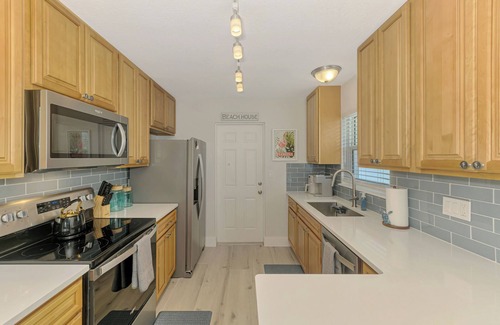 NEW VACATION RENTAL ALERT! Welcome to our fully renovated 2-bedroom, 2-bathroom private villa located in the tropical paradise of Polynesian Gardens on Siesta Key! This recently updated, tastefully decorated vacation home boasts a comfortable living area, modernly furnished and flooded with natural light. The primary bedroom features a king-size bed and an ensuite bathroom, while the second bedroom offers a twin bed and full bed, perfect for families or a group of friends. Start your day watching the dolphins frolic in the water as the sun rises, and then head down to the heated pool for a refreshing swim. For the adventurous, the nearby fishing pier is perfect for casting your line out and reeling in the catch of the day. As the sun sets, you'll experience the breathtaking views that Siesta Key is known for and witness the lively drum circle celebration-- a true local tradition. Located within walking distance of numerous restaurants, bars and attractions, you'll never run out of things to do during your stay. Relish in the stunning sunsets, lose yourself in the rhythmic beat of the drum circle, or kick back and enjoy the warm Florida sun by the pool--whatever your heart desires, our Siesta Key villa is the perfect home base for your unforgettable vacation! Book now to secure your slice of paradise!