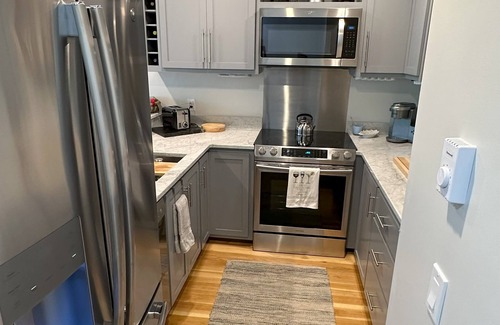 Modern, comfortable 3 level condo at the base Burke mountain. 2 bedroom + Loft. Wake up and walk to the lift! For bikers the Kingdom trails are at your doorstep! Lower level has laundry, full bath and bedroom with queen and futon. Main level has 1/2 bath, kitchen, dining and living area. Upper level has full bath, queen and a loft with both double and twin beds. Mostly renovated and immaculate. This condo has had many renters in the past with nothing but rave reviews, but is new to VRBO.
