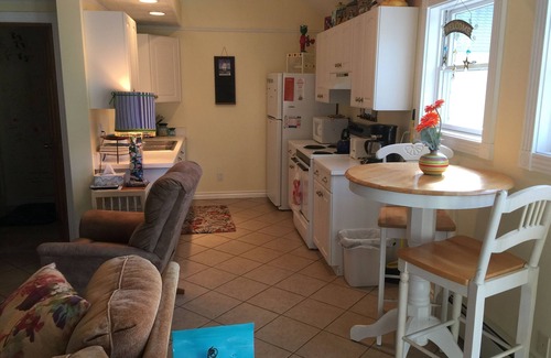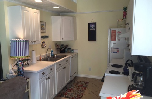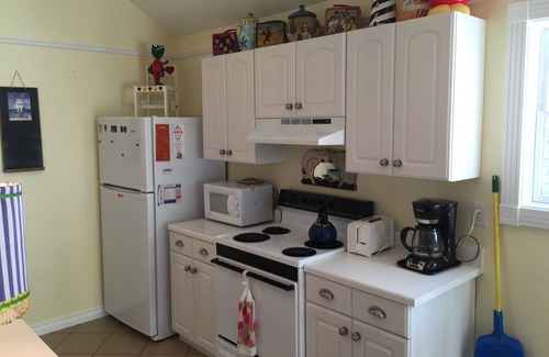 Equipped with Refrigerator, electric stove, Microwave oven, coffee maker, toaster, cable TV & wireless internet, TV/DVD/CD player, Board games and cards. Small private porch with 2 chairs/table. Shared use of a large entertainment patio, and gas grill.