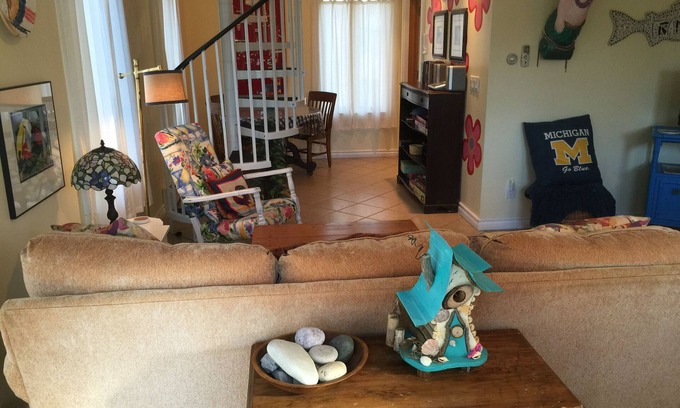 "The Birdhouse" is unlike any other vacation rental you will find. It is artsy, charming, fun and frivolous. Kids love it – who wouldn’t love a spiral staircase, a sleeping loft, original art pieces, a cookie jar & lunchbox collection, resident mermaid, and magnetic letters on a vintage refrigerator door hung on the wall?