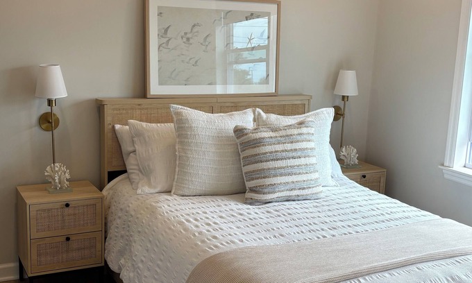 Walk across the street to Scarborough beach! Fun awaits at your stylish Narragansett beach retreat just a few steps from the entrance of Scarborough Beach North. Completely renovated in 2025, this 4 bed/ 3 bath stunning home with central AC is ready for you to enjoy all of the beauty Narragansett has to offer.