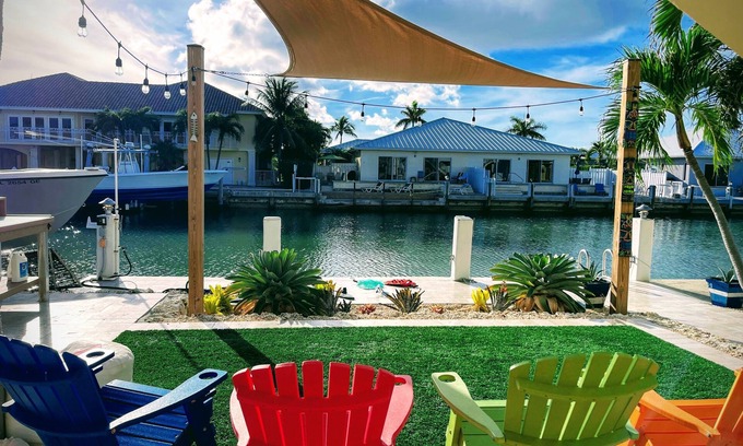 Come vacation in the Florida Keys! Duplex Stilt House located in beautiful Key Colony Beach with a 30 foot dock. Sit back in your own adirondack chair on the paver and turf patio overlooking the 100' foot wide canal. Watch the manatees and schools of mullet swim by almost daily. Clean your fresh catch on your cleaning table and grill it on the outdoor grill just a few feet away. Enjoy the convenience of a large downstairs enclosed storage area with a bait freezer, extra refrigerator, and rod holders. Storage area also serves as a hang out room and game room (ping pong table, etc). Care to take a dip in a pool or a plunge in the ocean? We provide your beach towels and the famous Cabana Club is only a 3 minute walk away. Restaurants (Havana Jacks and Key Colony Inn) with live music are also a short walk away.