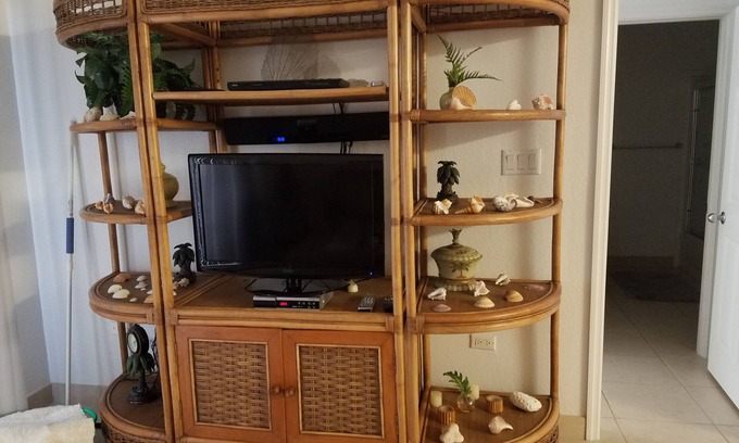 Stingray Kai is a 2 bedroom 2 bath condo located on the first floor, the master bedroom has a king size bed and an ensuite bathroom. The second bedroom has twin beds convertible to a queen, and a bathroom located just outside the bedroom. There is a fully equipped kitchen, washer and dryer, dining area and a living room, all open-concept. The living room has a 27 inch flat-screen and Wi-Fi is available. A screened in lanai has a small table and chairs to enjoy outdoor dining. The unit has towels, beach towels, and hair dryers. We recommend you to stop by the Fosters Food Fair IGA / Countryside in Savannah as you make yourself across the island to the condo. This area has a very nice grocery store, liquor store and other necessities. We also recommend obtaining a car rental from the airport car rental businesses.