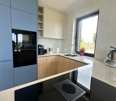 Featuring a garden, Stodoła nad Gizdepką features accommodations in Osłonino. The property is around 12 miles from Gdynia Harbour, 14 miles from Shipyard Gdynia, and 14 miles from Gdynia Central Railway Station. The villa also offers free Wifi and free private parking. With direct access to a balcony with garden views, the spacious air-conditioned villa consists of 4 bedrooms. Offering a terrace with sea views, this villa also has a flat-screen TV, a well-equipped kitchen with a dishwasher, an oven, and a microwave, as well as 4 bathrooms with a bath and a hair dryer. The property has an outdoor dining area. Batory Shopping Center is 14 miles from the villa, while Kosciuszki Square is 15 miles away. Gdańsk Lech Wałęsa Airport is 27 miles from the property.