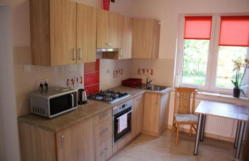 Offering a garden, Stokrotka noclegi Nałęczów provides accommodations in Nałęczów. Guests staying at this guest house have access to a balcony. The guest house offers rooms with air conditioning, free private parking, and free Wifi. The guest house provides guests with a terrace, garden views, a seating area, a flat-screen TV, a fully equipped kitchen with a dishwasher and an oven, and a private bathroom with shower and a hair dryer. A microwave, a fridge, and kitchenware are also featured, as well as a kettle. At the guest house, the units come with bed linen and towels. With an outdoor fireplace and a picnic area, this guest house offers plenty of opportunities to chill out. Kazimierz Dolny Castle is 15 miles from Stokrotka noclegi Nałęczów, while Krakowskie Przedmieście Street is 18 miles away. Lublin Airport is 27 miles from the property.