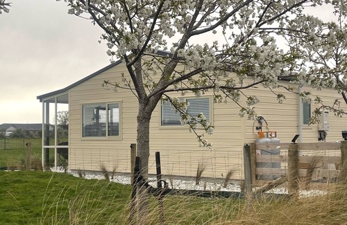 A standalone cottage, New in 2021. Well equipped. Situated in a quiet rural area yet only 6 minutes from the city. All new furnishings. A very spacious outlook with sheep as neighbours. Ideal for a peaceful stay. Very well equipped for meal preparation. A washing machine is provided for your convenience. This cottage has all the modern building code requirements making for a cosy stay. Double glazed for warmth & quietness Cleanliness & friendliness is our forte.