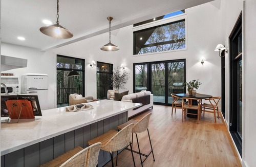 Nestled in the serene beauty of Hocking Hills, Ohio, this modern 2-bedroom cabin offers a perfect blend of contemporary design and natural tranquility. With its sleek architecture and expansive glass windows, the cabin brings the outdoors in, allowing you to fully immerse yourself in the surrounding forested landscape. Must be 21 years or older to rent. Steep Driveway- 4WD/AWD highly recommended!