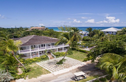 Located in the quiet Triana Shores neighborhood of delightful Harbour Island, this luxurious 5-bedroom, 5.5 bath home is only a stone's throw away from the famous Pink Sands Beach yet still convenient to the restaurants and nightlife of the island. Each bedroom is en suite...two with king beds, one with a queen and two with twins for maximum flexibility. All bedrooms are equipped with smart TV's and there is WiFi throughout. The fully equipped kitchen and dining area that seats 10 are perfect for large parties and the lovely pool area also has a covered bar and large screen TV for your outdoor enjoyment. The covered porch that wraps around both levels also provides guests with multiple choices for outdoor relaxation.