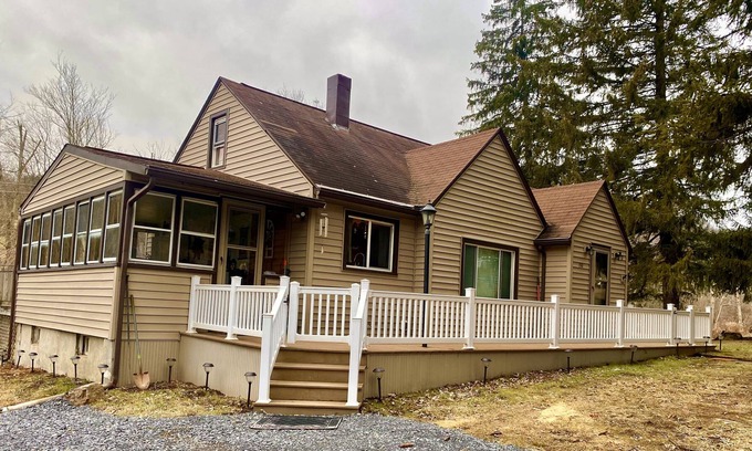 Enjoy a cozy stay in this fully renovated cottage underneath beautiful, mature pine trees. This lovely little home can sleep up to six guests, features a designated work space, and an enclosed sunporch - perfect for admiring the mountain views as you sip your morning coffee. Conveniently located just 12 minutes from Penn State University and even closer to Rolling Rails Lodge, Stoney Bottom Celebration Venue, and Marrara's Mountain Lodge.