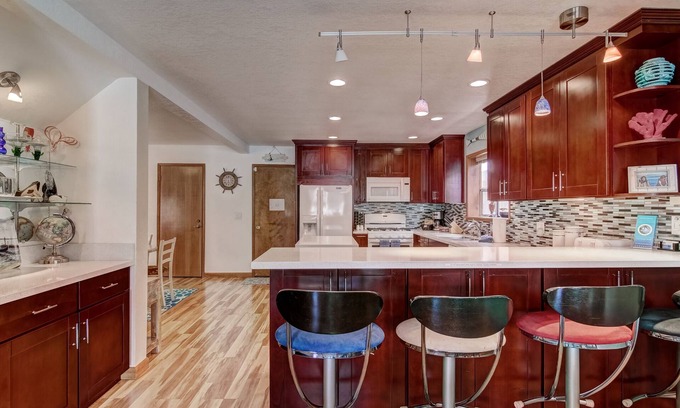The kitchen is fully stocked so that you can cook and serve a Thanksgiving dinner. There are three dining areas including the breakfast bar.