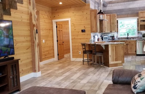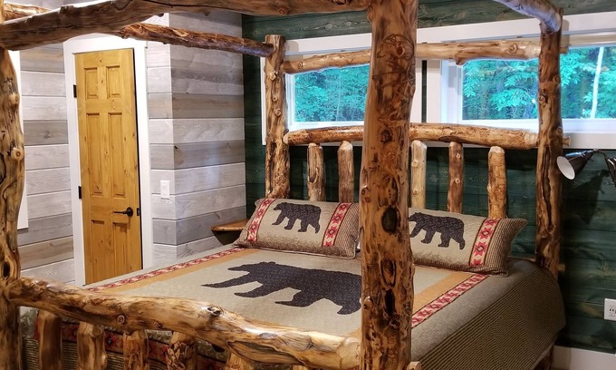 The Caretaker's cabin is tucked into the forest and is 1700 sq/ft of wow. Newly furnished with custom log furnishings and can accommodate 8+ if sleeping on the microfiber sofas are ok. It has a full kitchen ready to cook a big meal, washer/dryer and 2.5 bathrooms (outdoor shower coming soon) SmartTV can connect to all your favorite online channels as well as SlingTV for sports or Hi-Definition antennae for local stations.