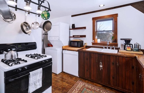 * Kitchen: Full kitchen, Gas stove, full sized refrigerator, microwave, coffee and tea station, All-Clad Stainless cookware - everything you need to enjoy meals with friends