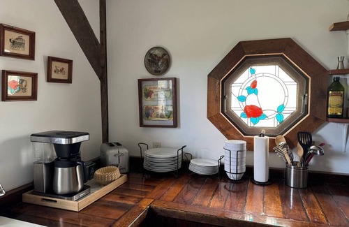 A unique 1887 reconstructed carriage house sleeps 8 in bedrooms with a/c and high quality memory foam mattresses, All-Clad cookware, shuffleboard and games to enjoy around the gas fireplace.