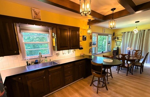 A magical 3BR retreat on 50 private acres, just 10 mins from Saratoga Springs, SPAC and the track - and 30 minutes to Lake George or Albany. Enjoy a waterfall out back, firewood by the pit, and a home stocked for real family living — books, board games, toys, and a kitchen that’s ready for a full meal. Wildlife wanders through, wildflowers bloom in season, and every detail is thoughtful. A fourth-generation retreat that feels like magic, not a rental.