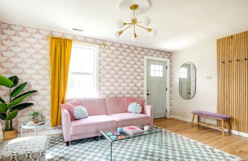 Welcome to Strawberry Moon! Our maximalist home is thoughtfully designed for a perfect vacation experience. Our unique property is full of colorful wallpaper, murals, and insta-worthy moments inside and out. The spacious backyard, featuring a pink cowboy pool and large deck, is a great place to spend time relaxing. Our convenient location provides easy access to the best restaurants, breweries, and shopping in town. We are also just a short walk away from Maymont, Byrd Park, and the James River.