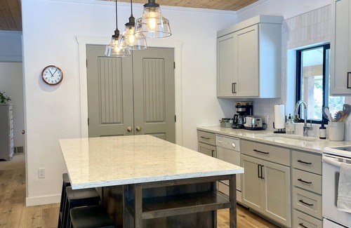 Our intimate 2 bedroom, 1 bath cabin with hot tub is perfectly sized for a couples retreat or family vacation to the Conde Nast award-winning resort. Bedroom 1 includes a king size bed and bedroom 2 a queen size bed. The living area is comfortable and spacious. The kitchen features quality appliances and granite countertops. Cooking ware, dishes, and utensils are also provided.