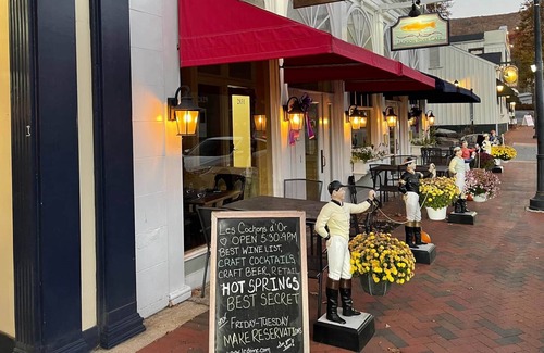 Located at 2831 Main Street in downtown Hot Springs offering convenient access to The Homestead, Snead's Tavern, micropub BACOVA BEER and many other downtown locations, all within walking distance. The entry for this walk up apartment is shared with LCDO Restaurant and Jackson River Café. Street View Apartment looks out onto Main St. It includes one bedroom with a queen, LR with pull out queen sofa, full bathroom, full kitchen (DW and disposal) with dining area, and washer and dryer. There is a 55" smart TV in the living room and excellent WiFi throughout.
