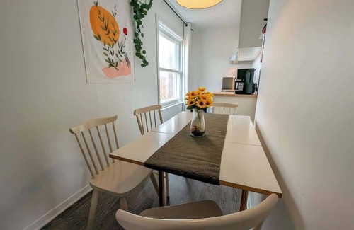 Ce charmant studio de style chambre d’hôtel, situé au rez-de-chaussée, offre un espace chaleureux et confortable. Il dispose d’une cuisinette, d’un coin travail, d’une télévision intelligente, d’une table à manger, ainsi que de deux lits queen pouvant accueillir jusqu’à 4 personnes.