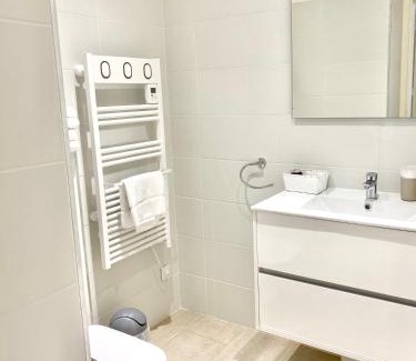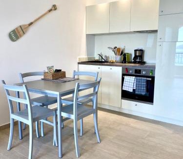 Offering a private beach area, Studio 3 personnes Front de Mer features accommodations in Tiuccia. This beachfront property offers access to a terrace and free private parking. Parata Tower is 25 miles away and Sanguinaires Islands is 25 miles from the apartment. With free Wifi, this apartment offers a cable flat-screen TV, a washing machine, and a fully equipped kitchen with a dishwasher and oven. Guests can take in the views of the sea from the balcony, which also has outdoor furniture. The accommodation offers an air conditioning, a heating, and a private bathroom. There is an on-site coffee shop. Tiuccia Beach is a few steps from the apartment, while Port de Plaisance Charles Ornano is 17 miles away. Ajaccio Napoléon Bonaparte Airport is 18 miles from the property.