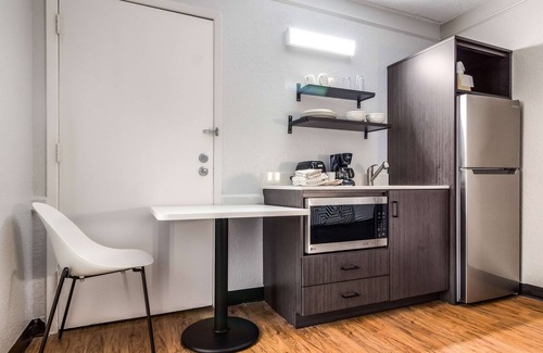 Studio 6 Baytown, TX - Garth Road offers 50 accommodations, which are accessible via exterior corridors and feature coffee/tea makers and irons/ironing boards. Accommodations offer separate sitting areas and include dining tables. Beds feature premium bedding. 40-inch LCD televisions come with cable channels. Kitchens offer stovetops, microwaves, separate dining areas, and cookware/dishes/utensils. Bathrooms include shower/tub combinations.