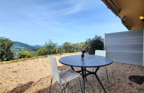 Pour profiter du beau temps et du paysage environnant, vous avez accès à une terrasse extérieure privée où vous pourrez vous détendre, prendre vos repas en plein air ou simplement admirer la vue panoramique.