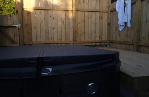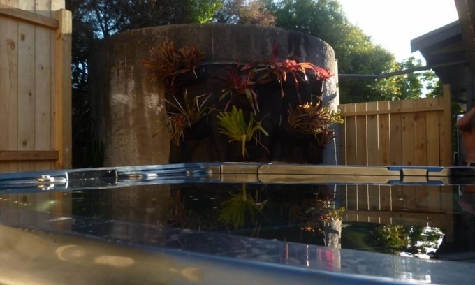 Fences separate the accommodation from the main family home and create a private area around the luxurious spa pool.