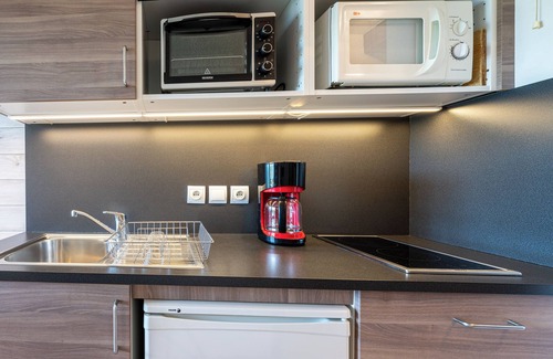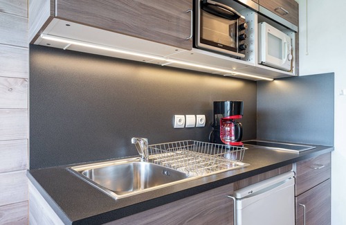 Studio n°14: LE CHARVIN: 2nd floor - 25m² with balcony overlooking Mont Charvin (EST) - sleeps 2 to 4. It comprises a fully-equipped kitchen (no dishwasher), a foldaway 2