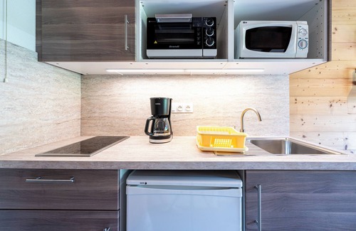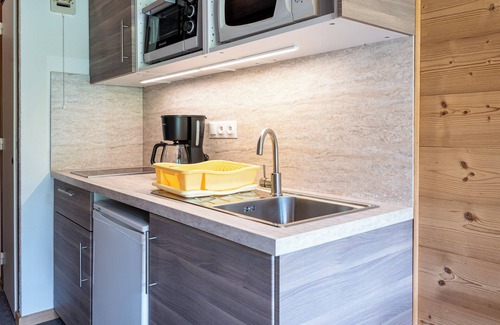 Studio n°16: LE LAGOPEDE: 3rd floor - 25m² with balcony overlooking the slopes in winter and the mountain pastures in summer (EST) - sleeps 2 to 4. It includes a fully-equipped kitchen (no dishwasher)