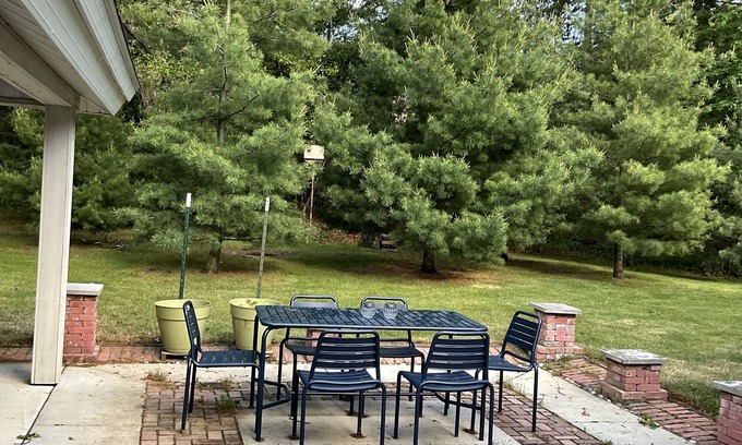 The studio has a separate entrance from the main house. It features a kitchenette, small balcony overlooking the backyard, shaded firepit, outdoor seating/dining, a well-appointed bathroom with tub, built in television with netflix, and air conditioner.