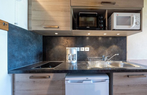 Studio n°7: LA PIERRAMENTA: 2nd floor - 25m² with balcony overlooking the slopes in winter and the mountain pastures in summer (EST) - sleeps 2 to 4. It includes a fully-equipped kitchen (no dishwasher), a foldaway double bed in the main room, a bedroom with 2 bunk beds, a bathroom with towel dryer and a separate toilet. Each bed is equipped with