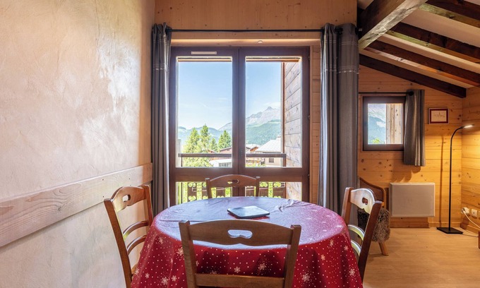 The chalet, with 18 apartments (2 to 6 people), offers a magnificent view of the Aravis mountain range and Mont Charvin. In winter, it's at the foot of the Crest-Voland/Cohennoz - Espace Diamant ski area, with a chairlift 50 m away. In summer, take a stroll from the chalet: forests, marked trails, fruit picking and streams nearby.