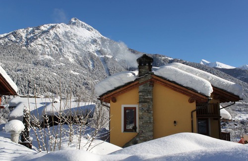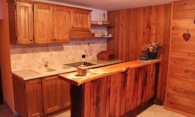 in Val d` Aosta, and is complete with a fully equipped kitchenette, a double bed and a sofa bed, which can accommodate three people.