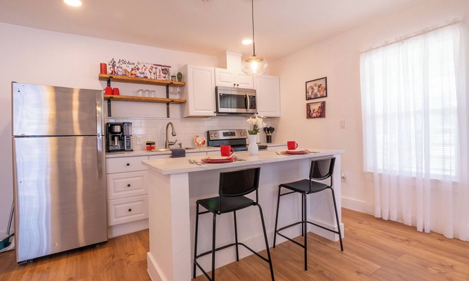 Equipped Kitchen | Queen Bed | Keyless Entry | Pet-Free (we offer separate units for pets)