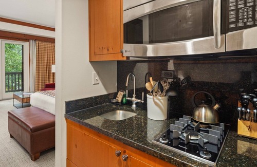 Welcome to our cozy Studio room inside the Lodge at Spruce Peak! Our studio room offers the perfect blend of luxury and comfort, creating the ideal retreat after a long day on the slopes or exploring the resort in any season—close to all the amenities at the Lodge and easy access to lifts and village.