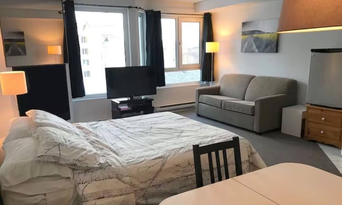 Right at the bottom of Mont-Sainte-Anne resort; this studio with views of the mountain will charm you.