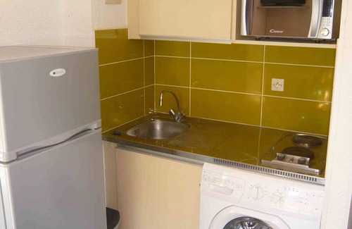 Au coeur des Marinas de Canet, à 300m de la plage cet appartement type studio cabine, en résidence sécurisée avec ascenseur. Aménagement agréable avec une entrée avec 2 lits superposés. Un séjour/salle à manger avec clic-clac et TV. Cuisine : plaques de cuisson, micro-ondes, frigo/congélateur, cafetière, nécessaire de vaisselle. Une salle d'eau avec douche et WC. Terrasse en angle exposée Est et Sud d'environ 20m². Equipé pour 4 personnes.Linge de maison et draps non fournis. Le ménage n'est pas inclus.