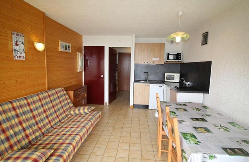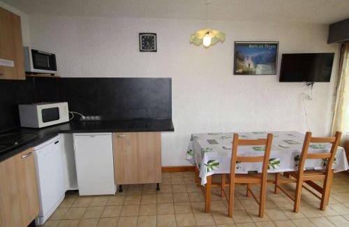 Studio cabine 4 couchages à 150m des pistes avec terrasse et parking - Auris en Oisans - FR-1-297-3 offers accommodations in Auris, 12 miles from Alpe d'Huez. With mountain views, this accommodation offers a terrace. The property includes a living room with a TV. There is a dining area and a kitchen complete with a dishwasher, an oven, and a microwave. For added privacy, the accommodation features a private entrance. Skiing is possible within the area and the apartment offers ski storage space. Alpes–Isère Airport is 65 miles away.