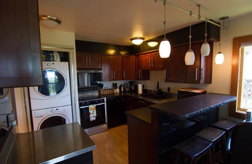 A Beautifully remodeled Studio Condo on the top level with fantastic western views of Jackson Hole Mountain Resort and Shooting Star Country Club. 5 minute walk to Jackson Hole Mountain Resort. Full kitchen with dishwasher, stove, oven, refrigerator, freezer microwave. HD Cable TV, Playstation 3, Wi-fi included. Washer/Dryer. The condo has a wonderful modern remodel and a great deck to watch the sunset from.