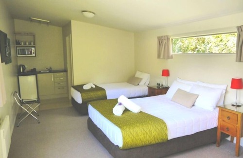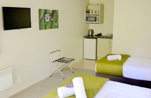 This heated studio offers large windows which look out towards the Franz Josef Glacier valley. Enjoy views of snow capped mountains, rainforest covered hills and from some rooms the Croz Glacier.
