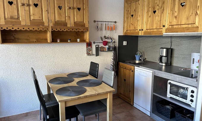 Pleasant studio of 24 m2 for up to 5 people (ideal 4) located in a residence classified 3 * (The METEOR) near shops, restaurants, ski lifts and ESF.